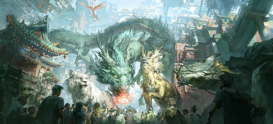 A Fierce Mythical Dragon, Set To Protect Its Kingdom Wallpaper -