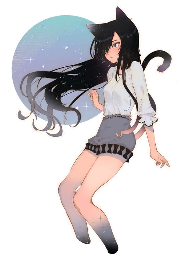 A Cute Anime Wolf Girl Stares Deep Into The Night Wallpaper -