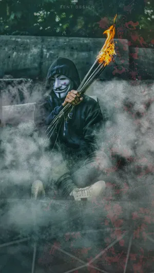 A Man In A Hoodie Holding A Fire Wallpaper -