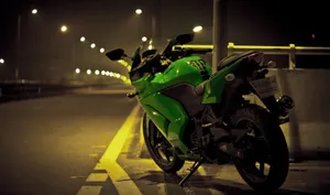 A Green And Black Motorcycle Parked On A Road Wallpaper -