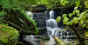 A Majestic View Of A Waterfall Cascading Down A Mountainside Wallpaper -