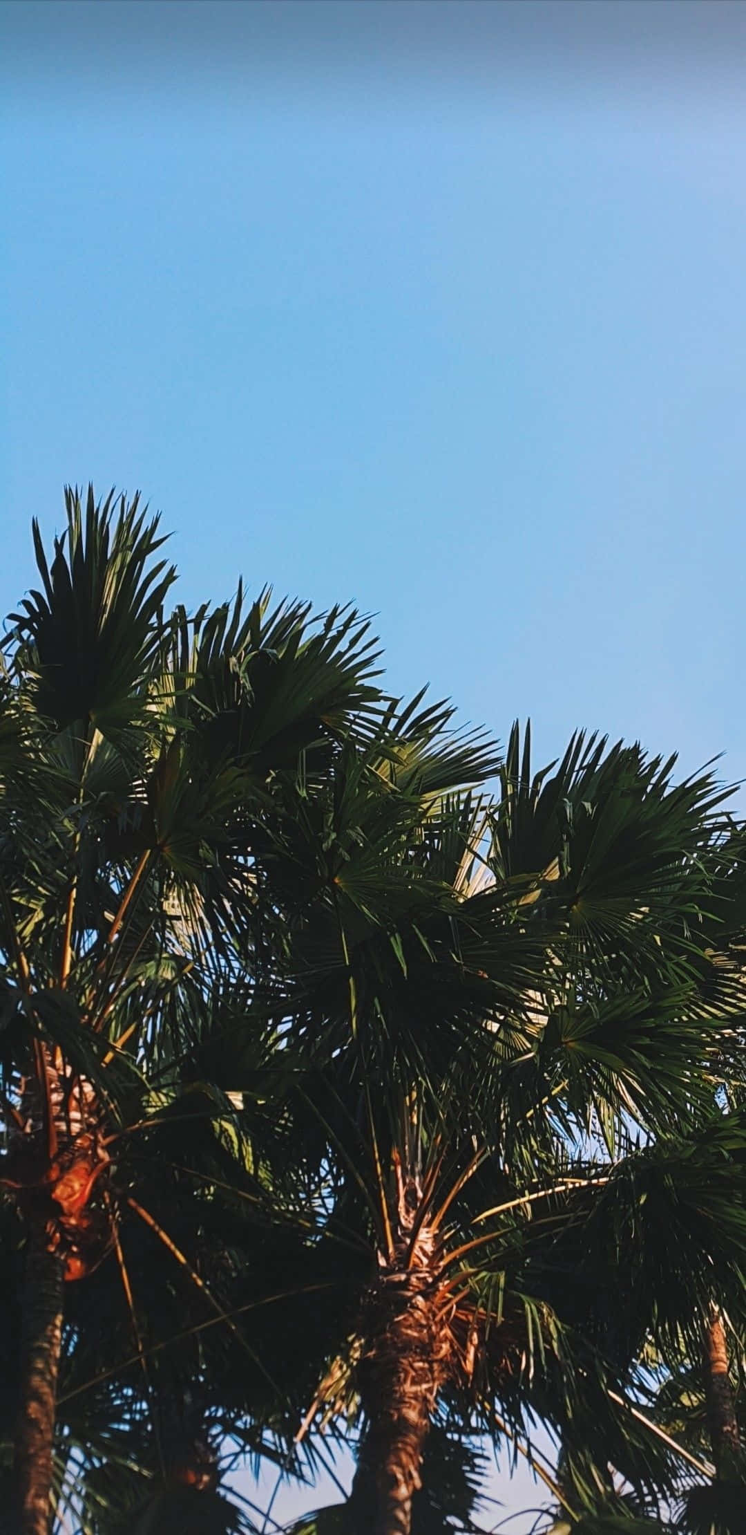 Palm Trees In The Sky With Sun Shining Through Them Wallpaper -
