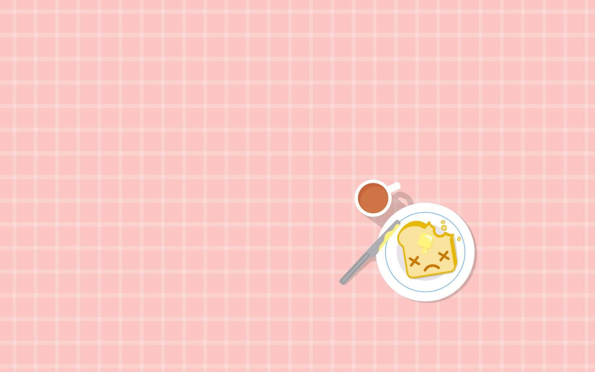A Pink Background With A Plate And Cup Of Coffee Wallpaper