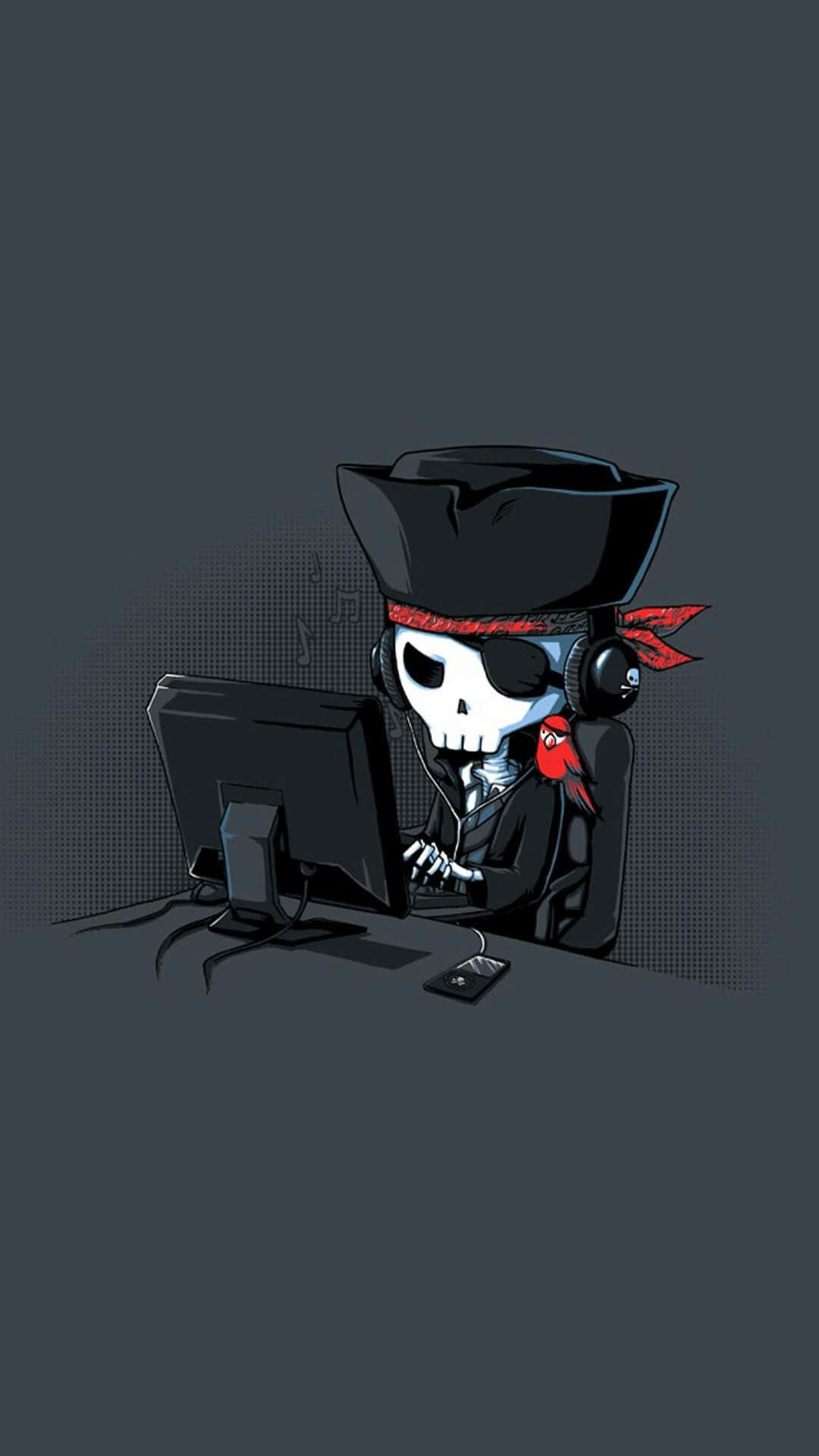 Related A Pirate Skull Sitting At A Computer Wallpaper