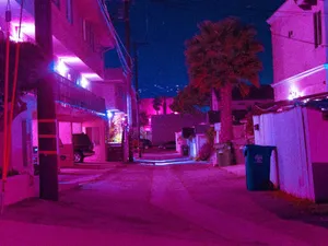 Related A Purple And Blue Palm Tree With Lights On It Wallpaper