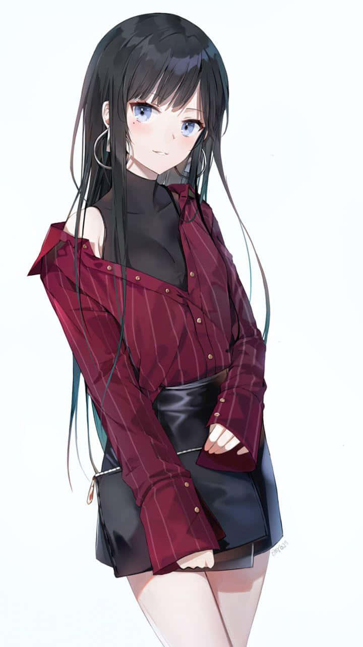 A Confident Anime Girl With Deep Black Hair. Wallpaper -