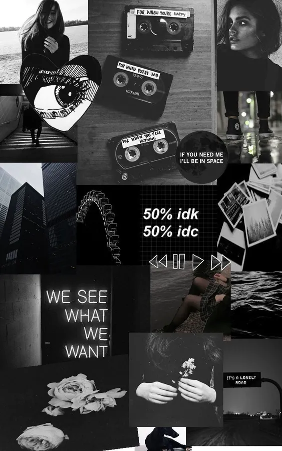 Aesthetic Quotes Black Collage Wallpaper -