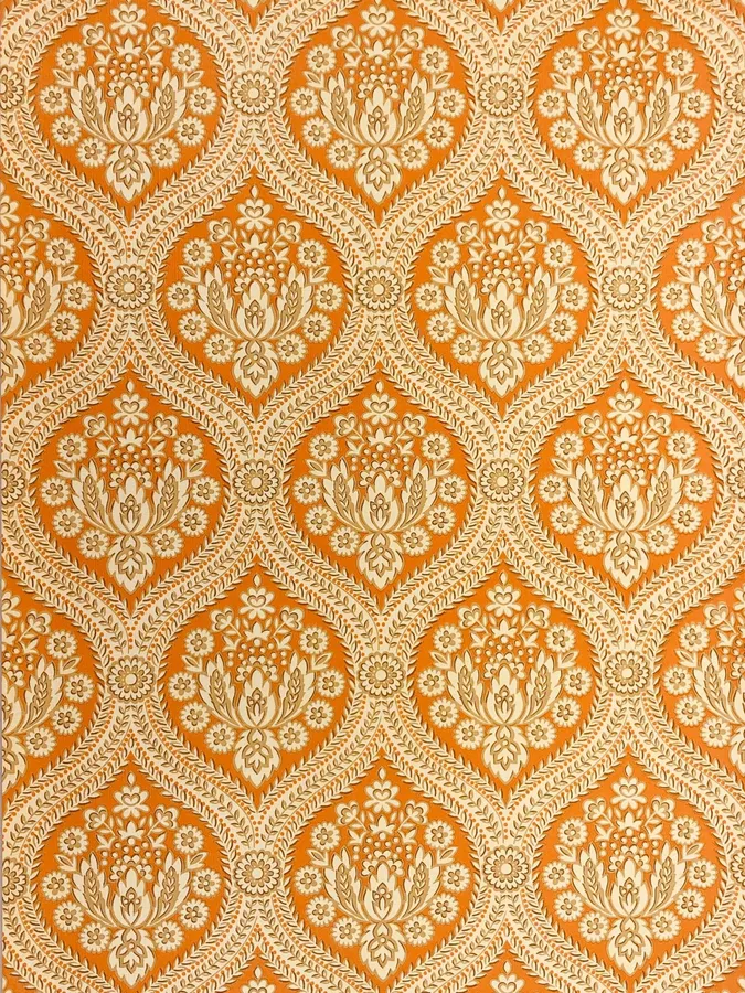 A Wallpaper With An Orange And White Pattern Wallpaper