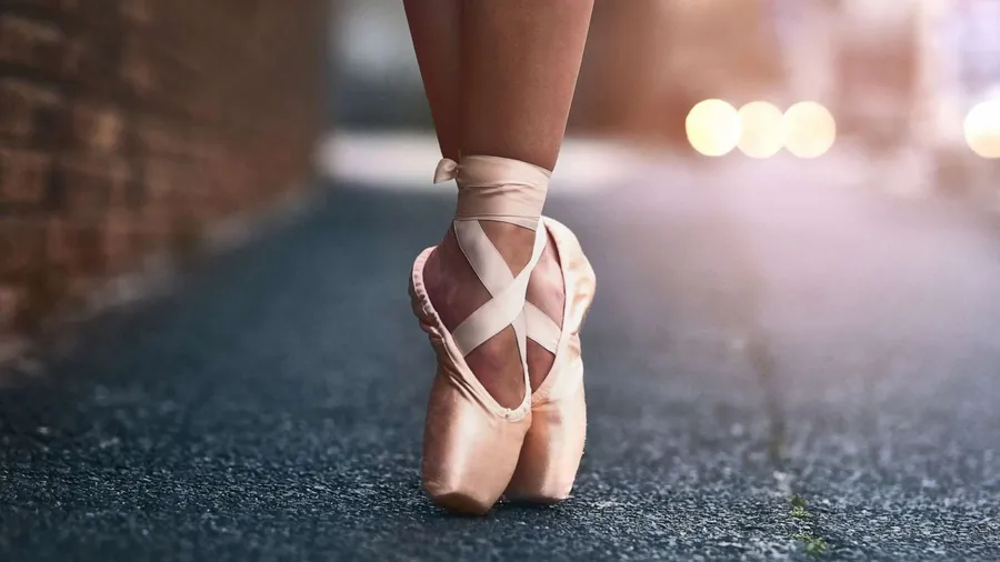 A Woman Wearing Ballet Shoes Walking Down The Street Wallpaper