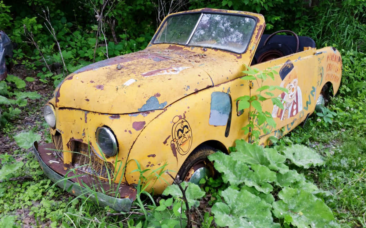 Vintage Clown Themed Car Abandoned Wallpaper -