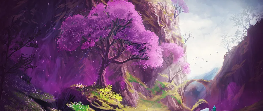 Pink Sun Through A Valley Art 2560x1080 Wallpaper