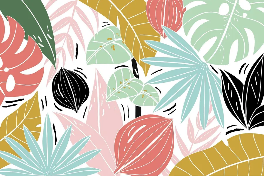 A Tropical Floral Pattern With Leaves And Flowers Wallpaper -