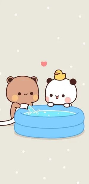 "adorable Milk And Mocha Bears Enjoying A Relaxing Pool Day" Wallpaper -