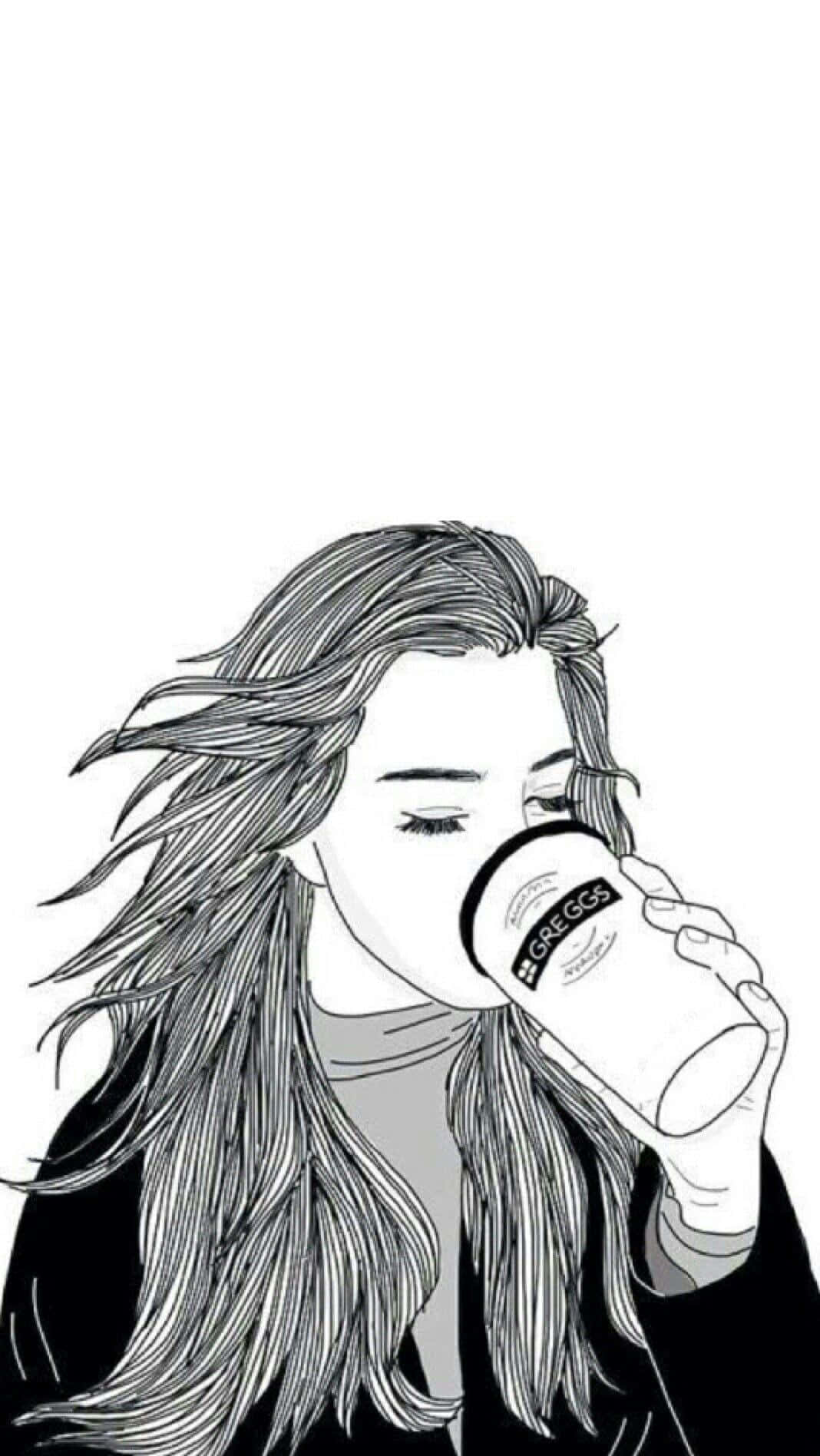 A Drawing Of A Girl Holding A Bottle Of Water Wallpaper -