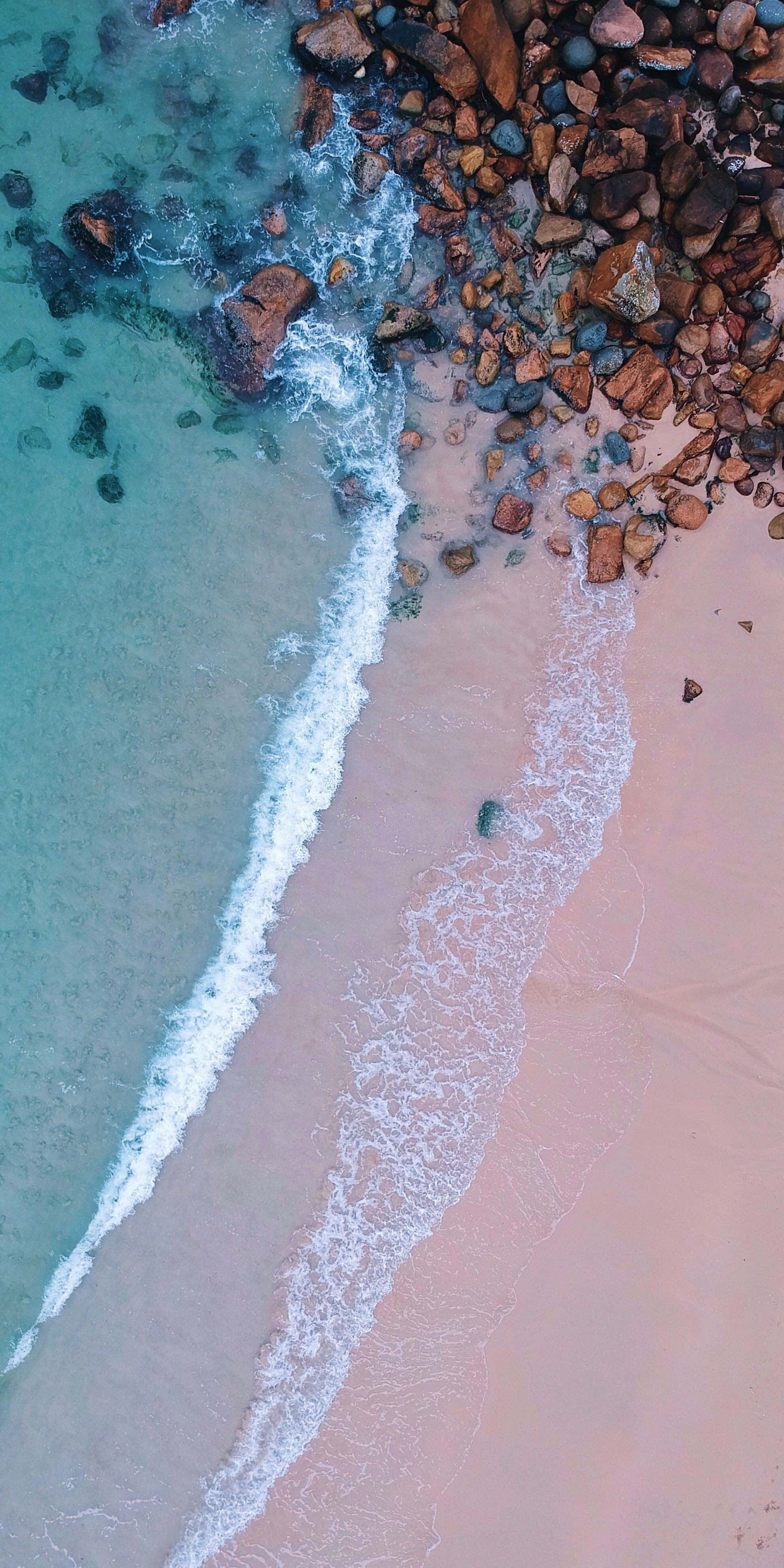 Aerial_ View_ Crystal_ Clear_ Waves_ Crashing_ Shoreline.jpg Wallpaper -