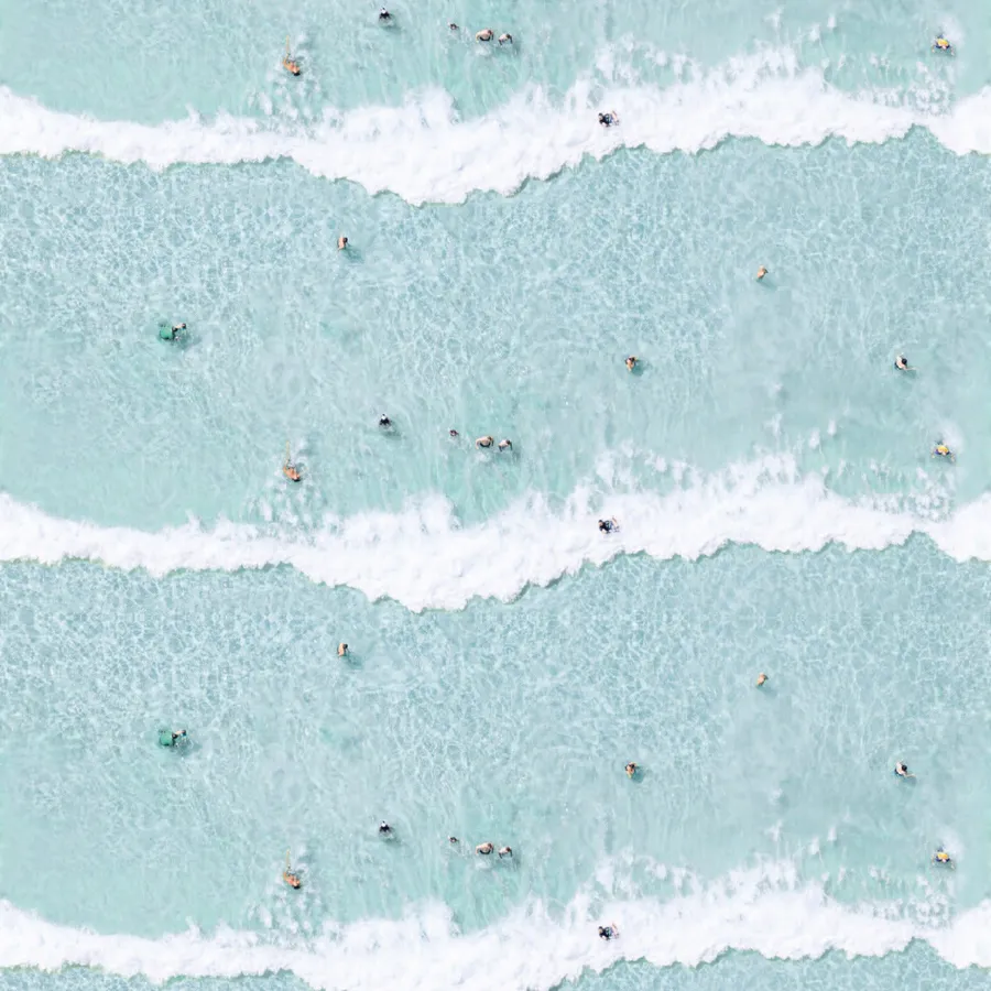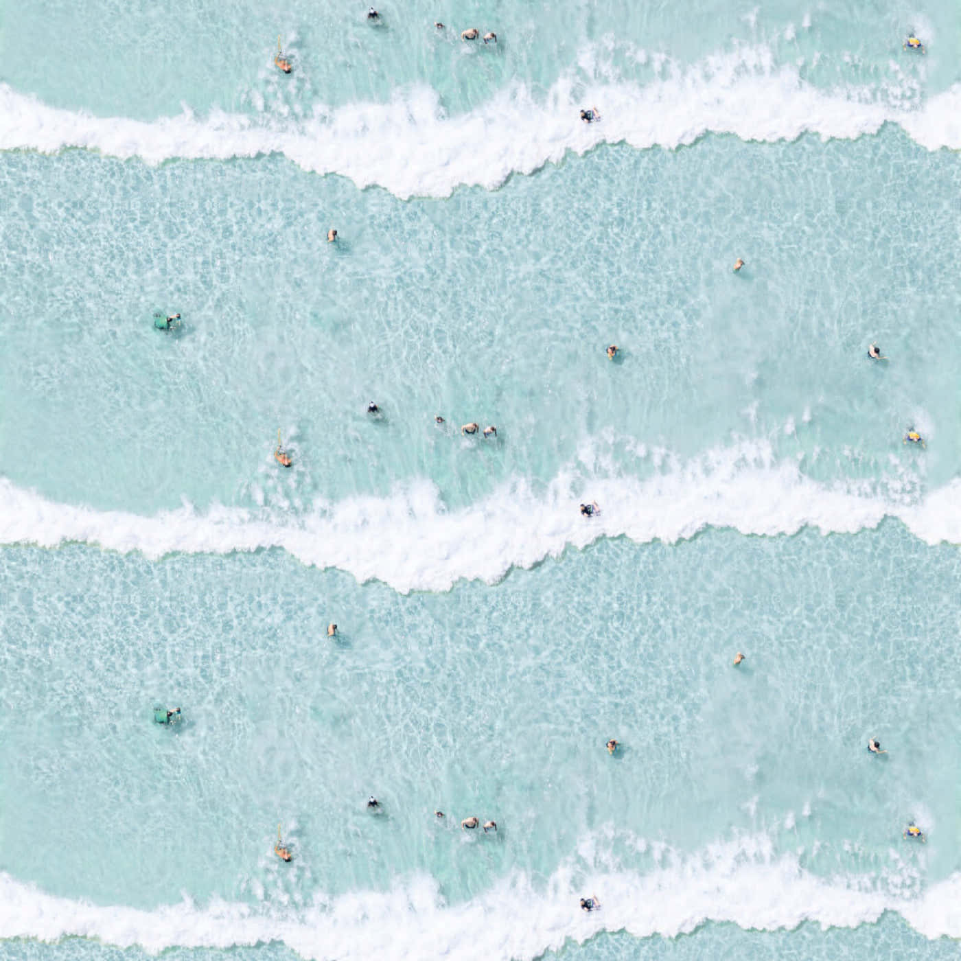 Aerial View Surfers Crystal Blue Waves Wallpaper