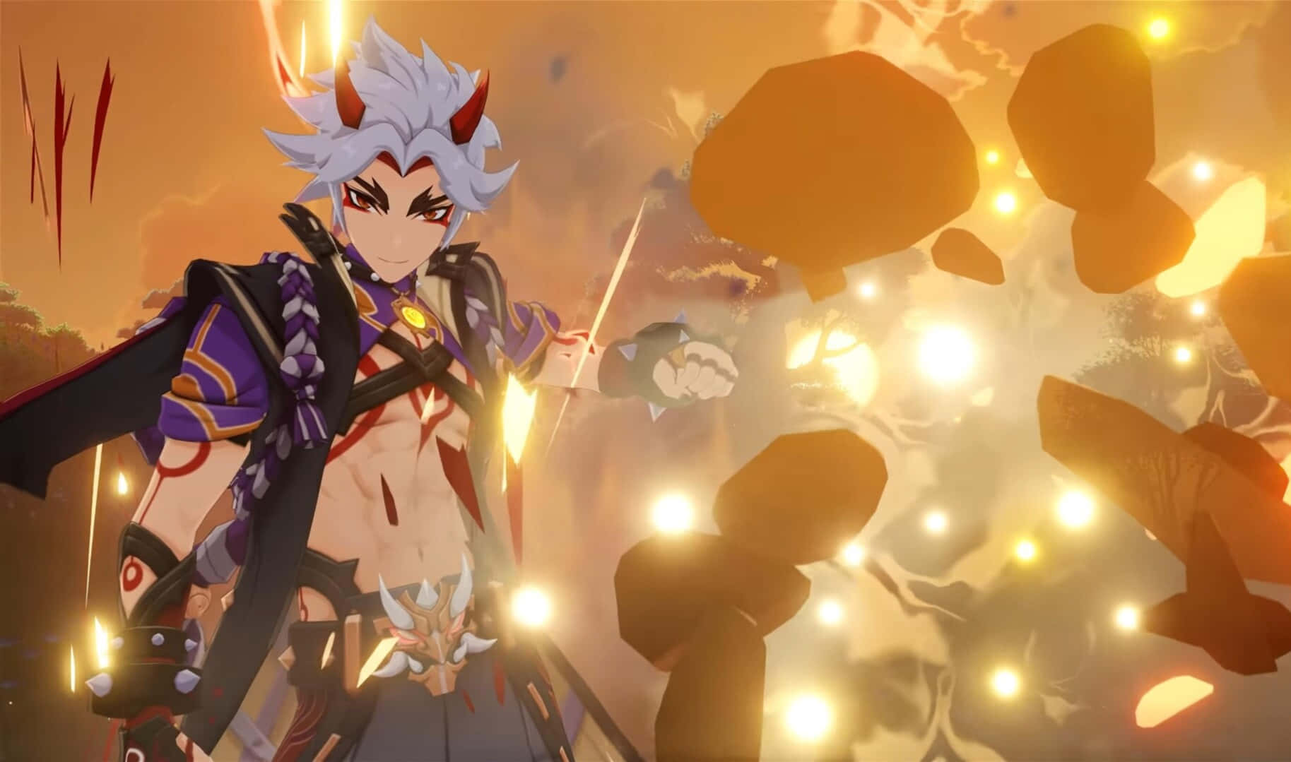Powerful Itto In Action - Genshin Impact Wallpaper -