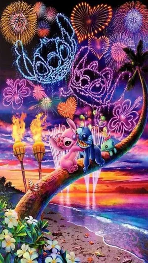 Stitch And Angel Embracing In Paradise. Wallpaper -