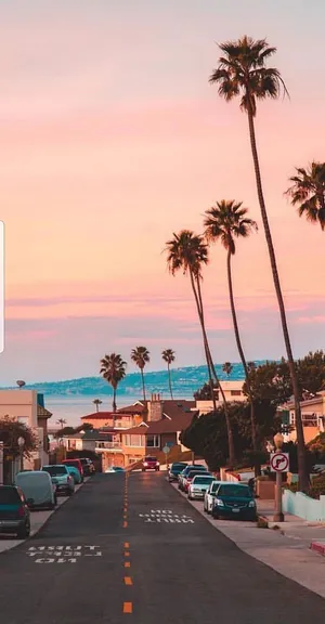 Aesthetic Sunset Iphone During Traffic With Tall Palm Trees Wallpaper -