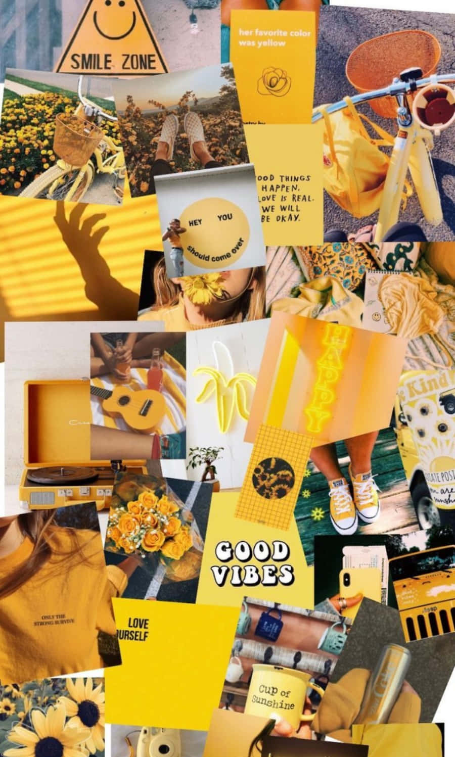 Iphone Collage Of Yellow Images With Sayings Wallpaper -
