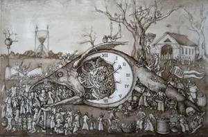 Surreal Art Big Ben Buried On A Field Wallpaper  -