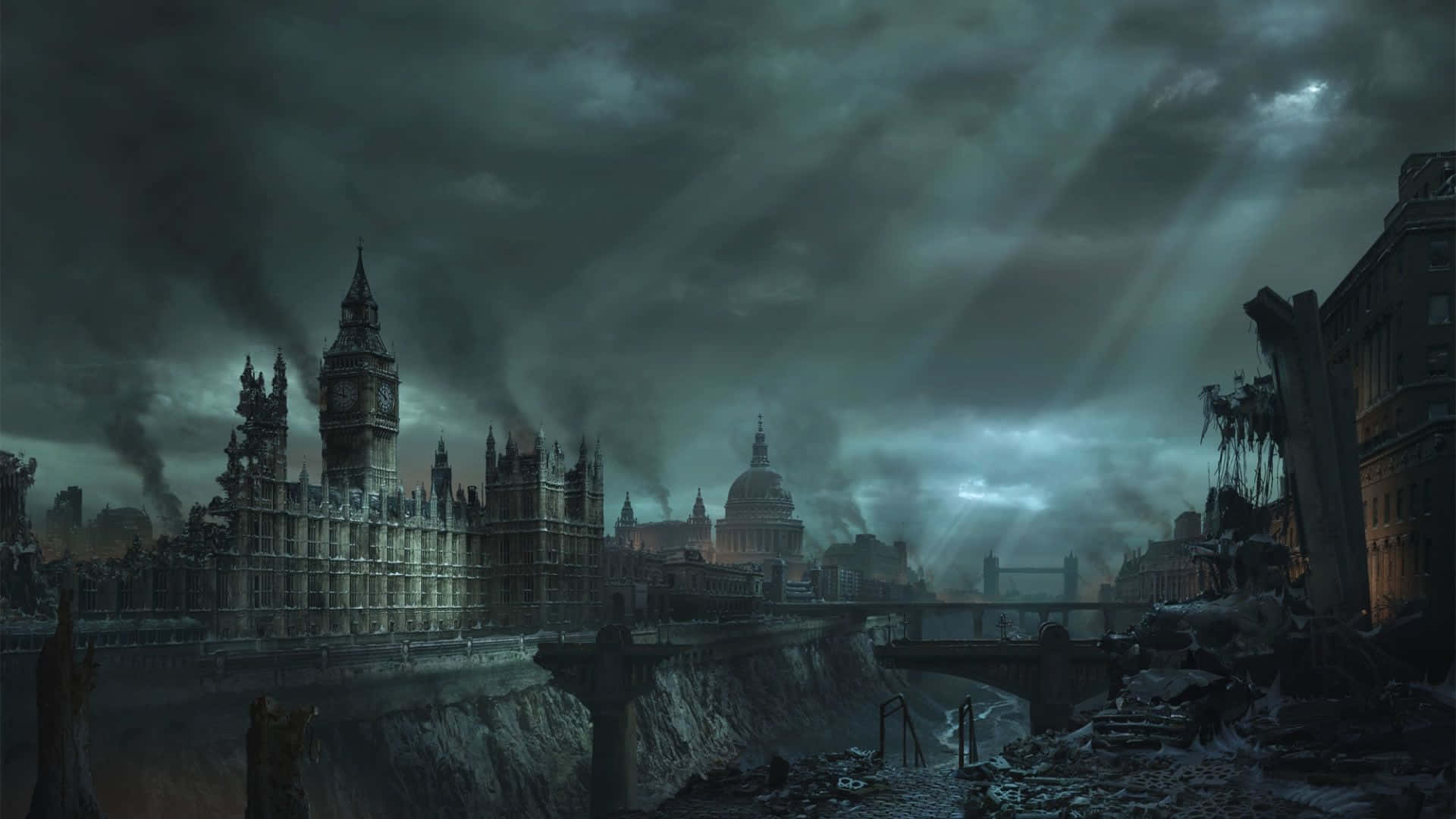 An Epic Journey Through A Mysterious Dark Fantasy Landscape Wallpaper -