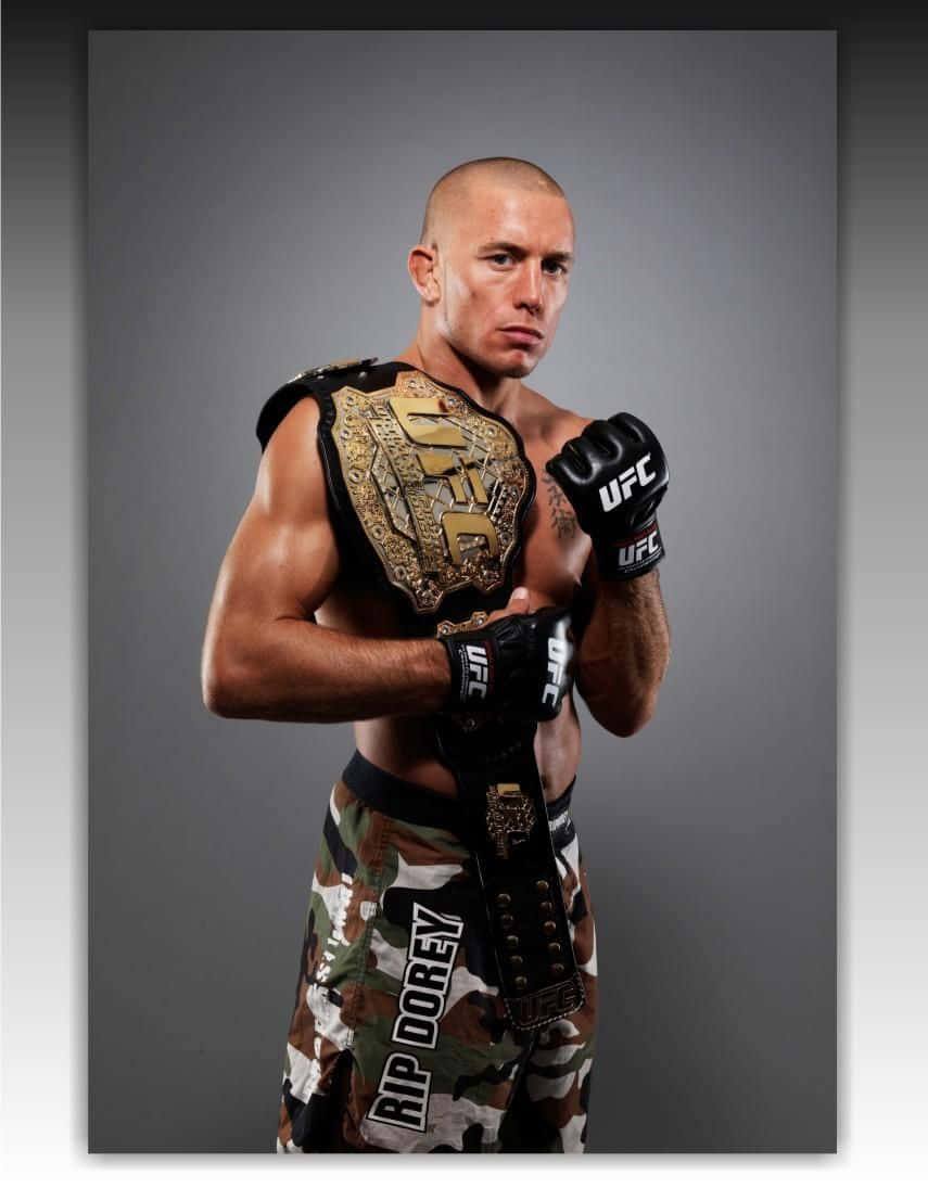 Champion Georges St-pierre, Reigning Ufc Title Holder With His Belt Wallpaper -