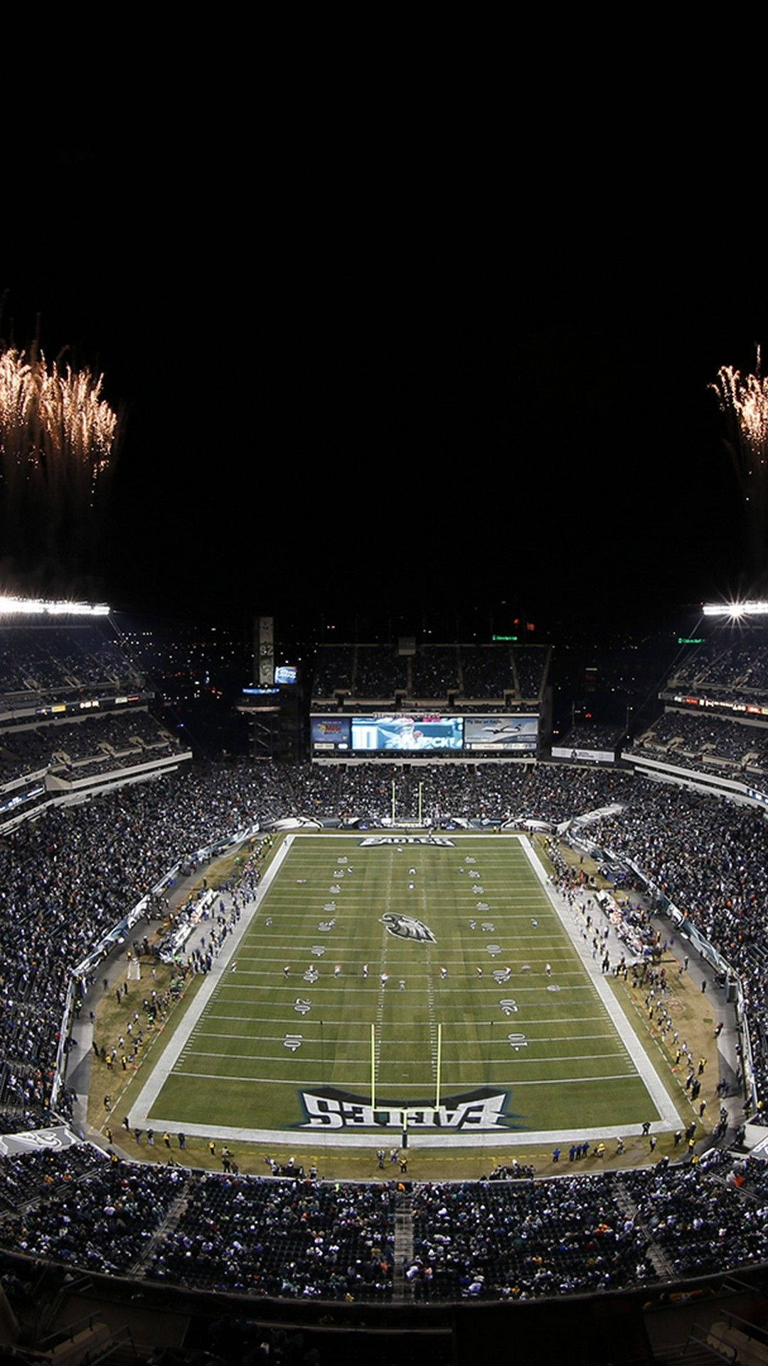 Football Field At Night With An Iphone In Hand Wallpaper -