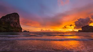 Enjoy The Shades Of Sunset On A Warm Beach Wallpaper -