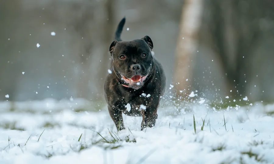 Playful Black Pitbull Enjoying His Day Wallpaper -