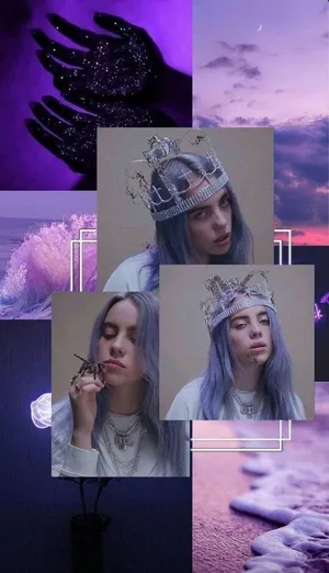 Billie Eilish Purple Inspired Moodboard Wallpaper -
