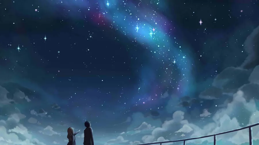 Related Blue Anime Aesthetic Desktop Starry Sky Couple Wallpaper
