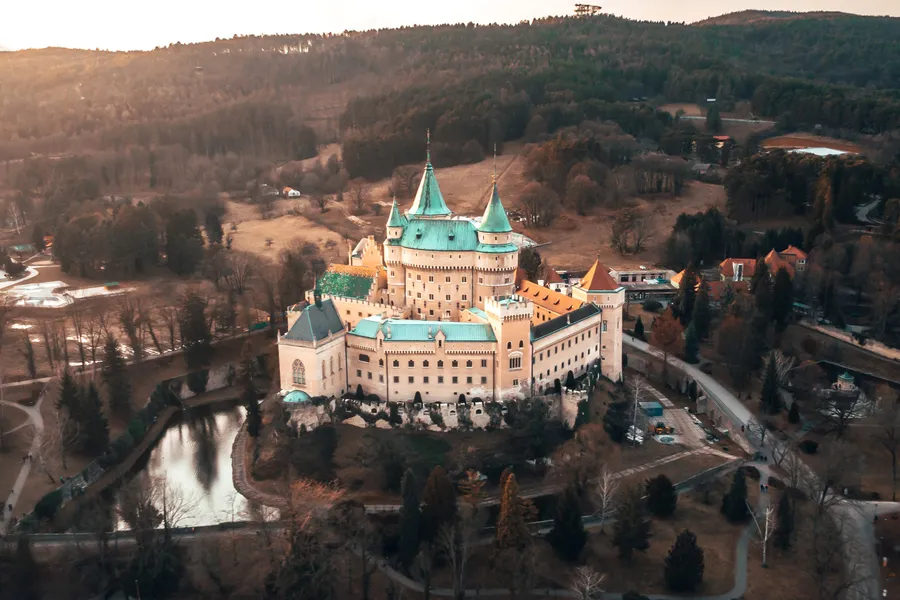 Aerial View Bojnice Castle And Forest Wallpaper -