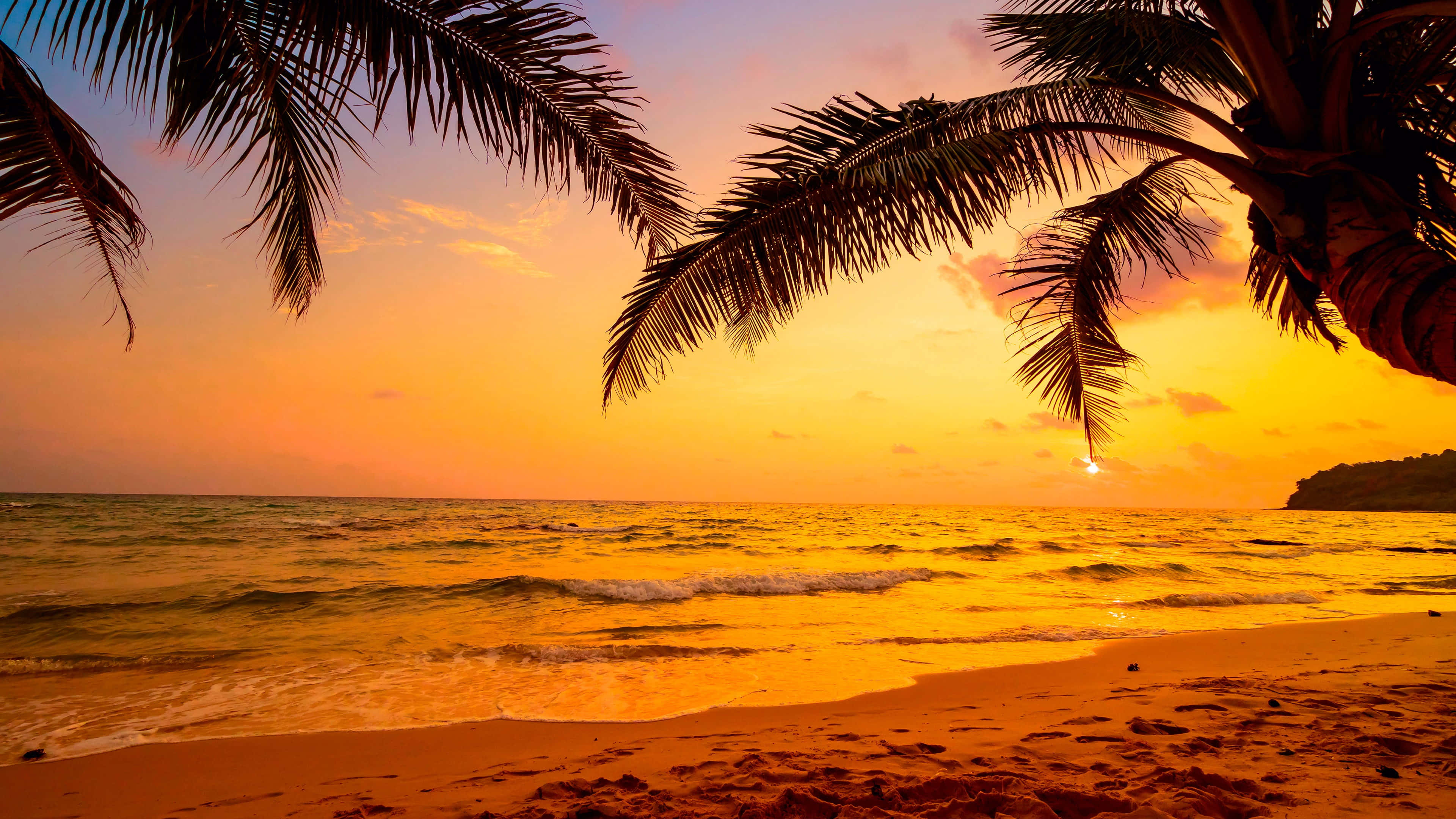 Experience The Beauty Of A Beach Sunset Wallpaper -