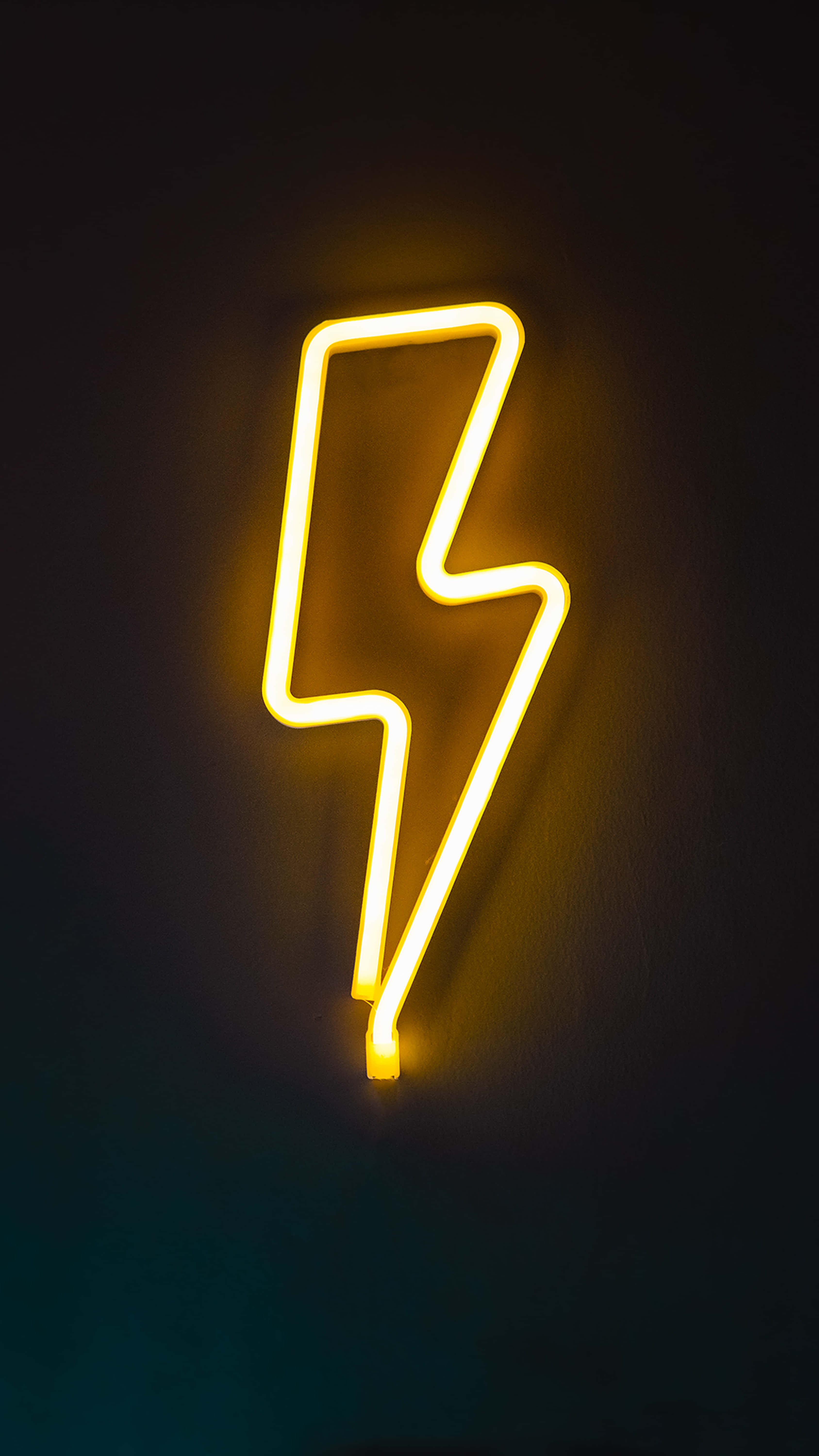 Downwards Yellow Neon Lightning Icon Wallpaper -