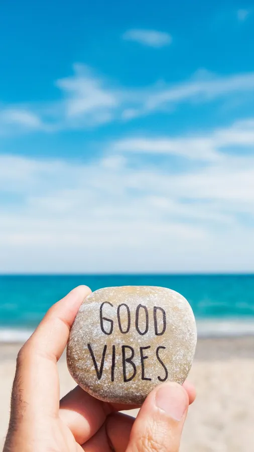Beach With Mountain Good Vibes Iphone Wallpaper -
