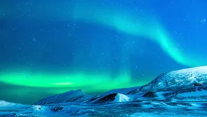 Majestic Aurora Borealis Over Snowy Mountains Wallpaper -