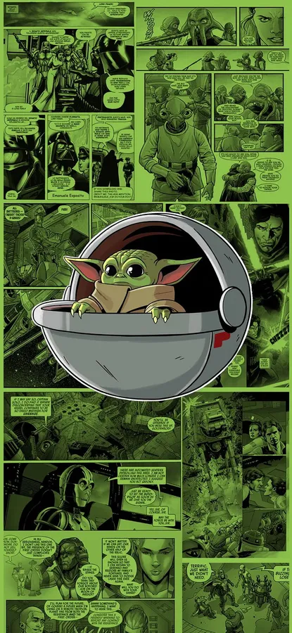 A Pattern Of Baby Yoda On A Green Background Wallpaper -