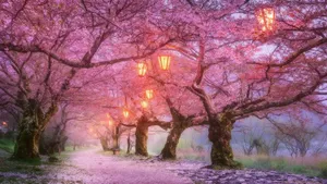 Celebrate The Beauty Of A Night Cherry Blossom Wallpaper
