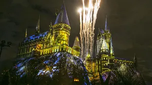 Hogwarts Castle Is Lit Up With Fireworks Wallpaper -