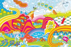 A Colorful Psychedelic Art Print With A Doodle Design Wallpaper -
