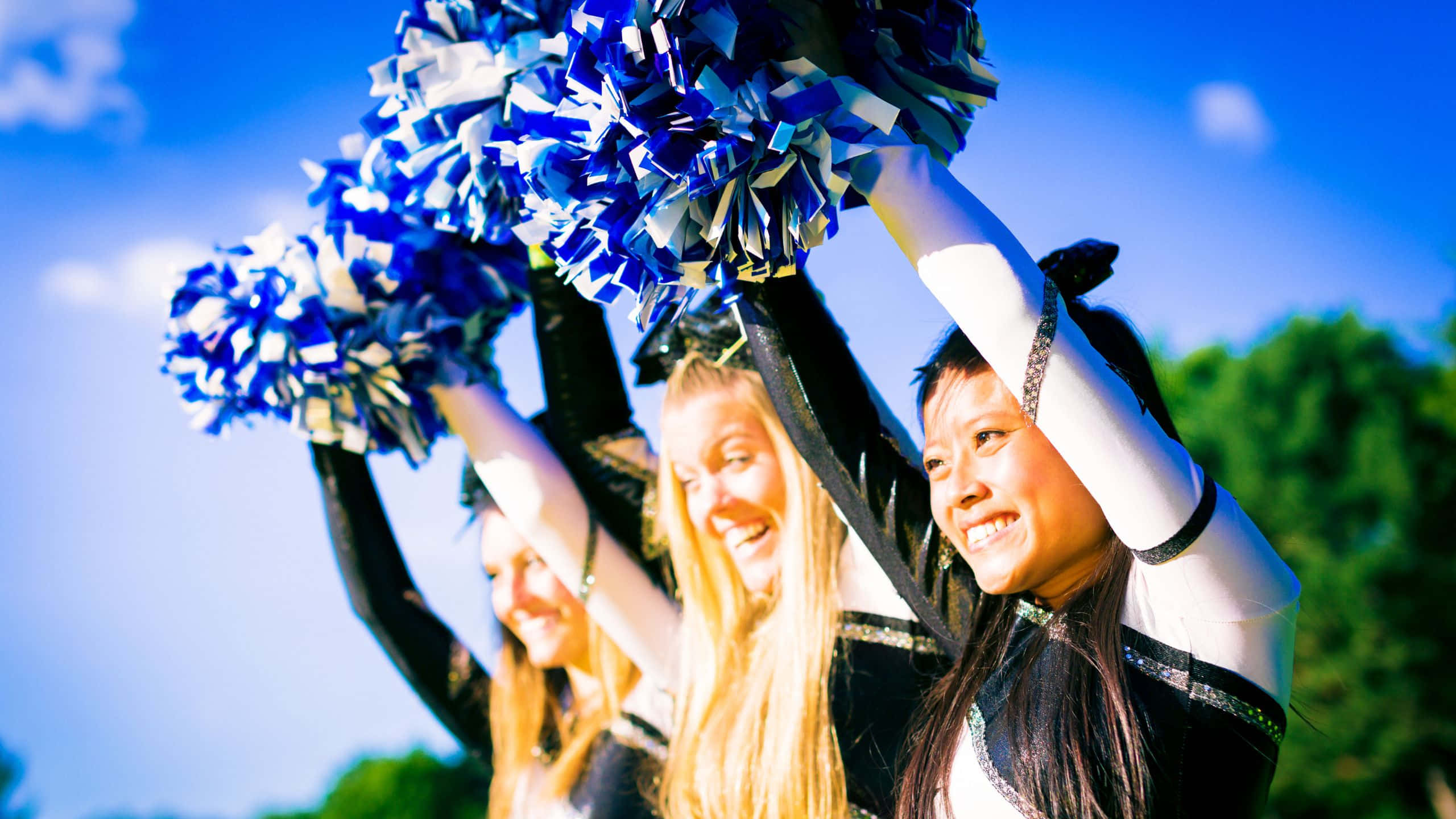 Sunlit Cheerleaders Raising Pom Poms Wallpaper -