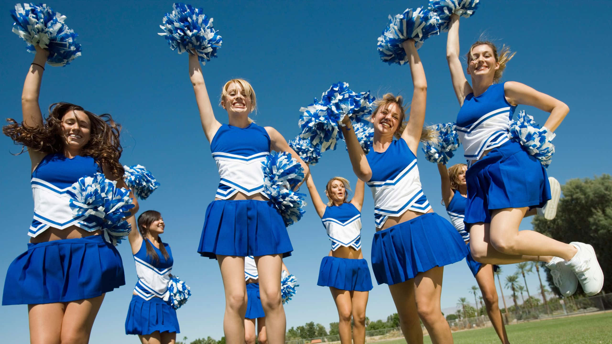 Sunlit Cheerleaders Raising Pom Poms Wallpaper -