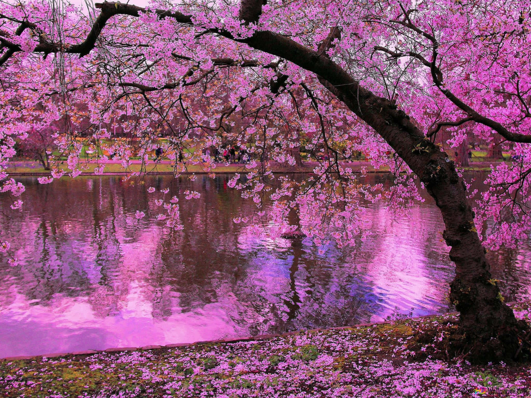 Related Cherry Blossoms Meets The Pond Wallpaper