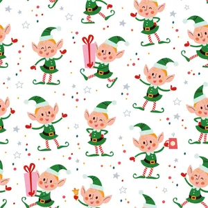 Christmas Elves Holding A Gift Pattern Wallpaper -