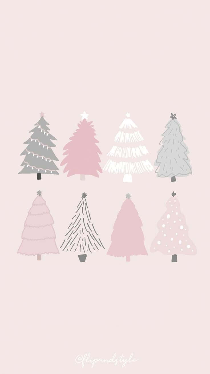 Pink Christmas Trees On A Pink Background Wallpaper -