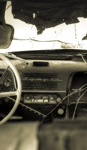 Old Car Dashboard Steering Wheel Phone Wallpaper -
