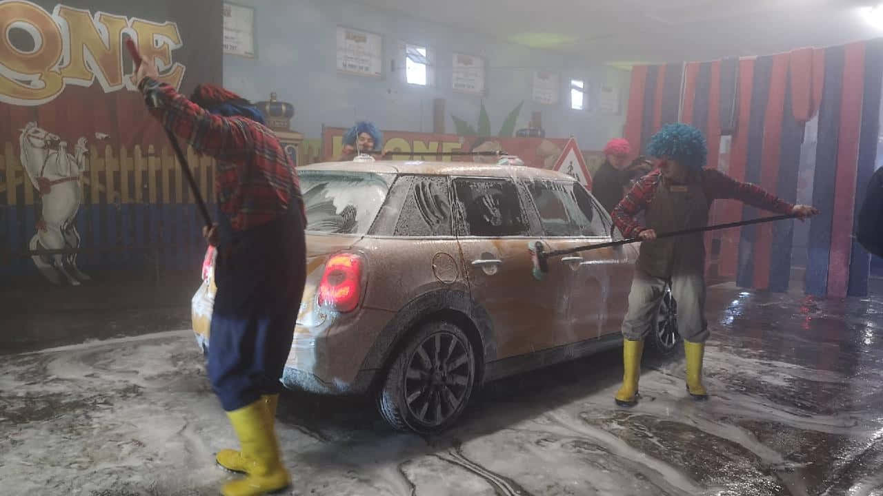 Vintage Clown Themed Car Abandoned Wallpaper -