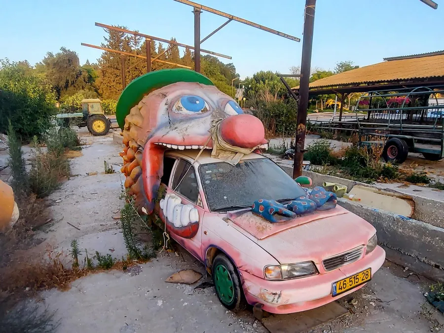 Vintage Clown Themed Car Abandoned Wallpaper -