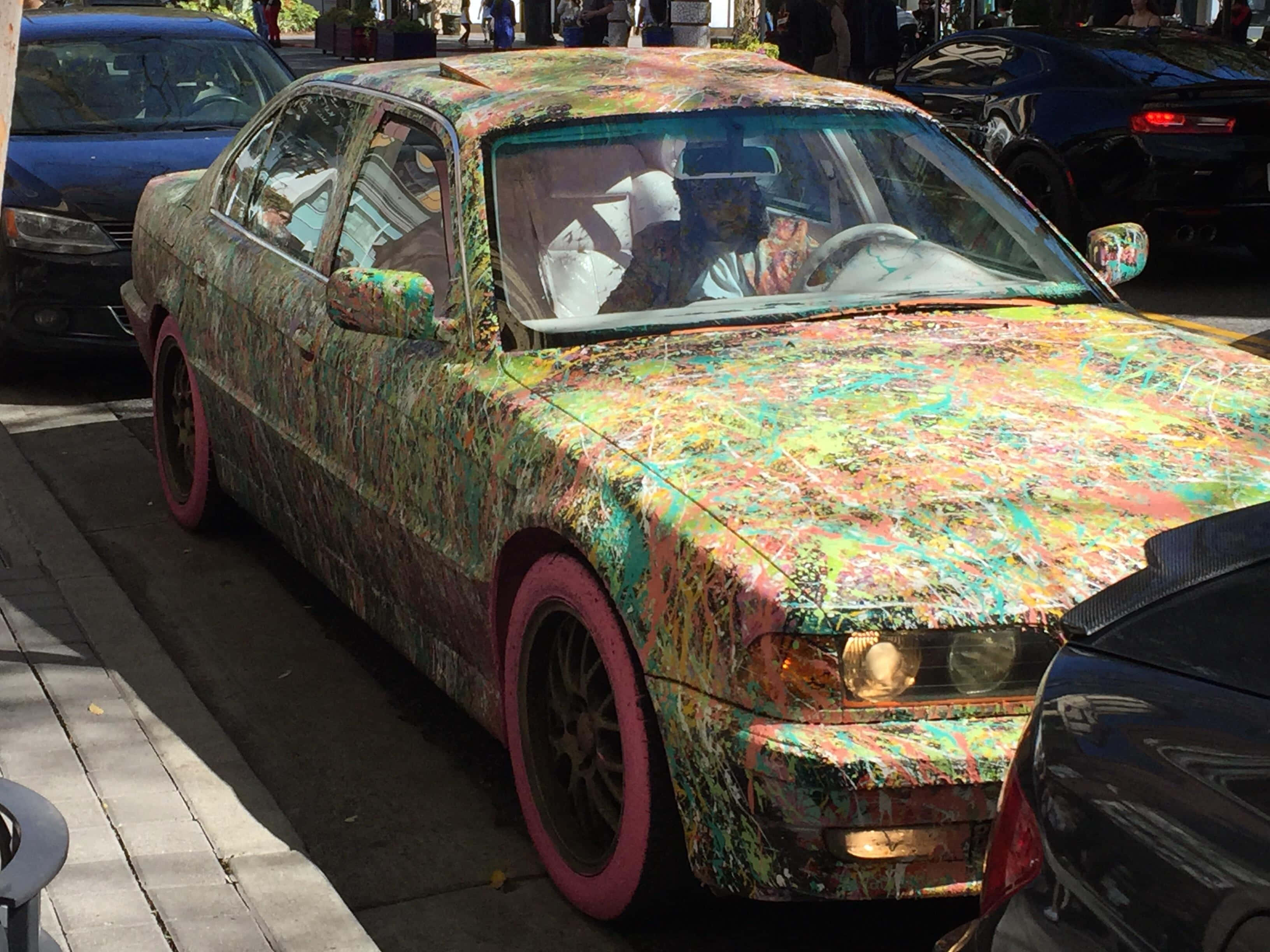 Colorful Paint Splattered Carwith Clowns -